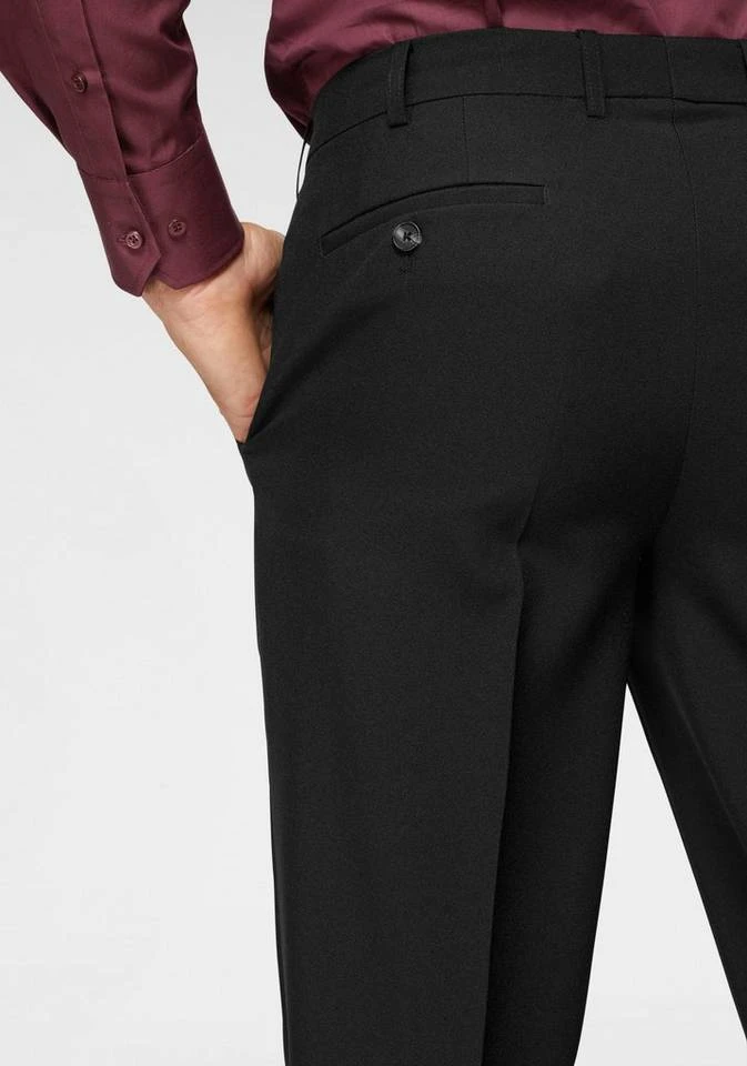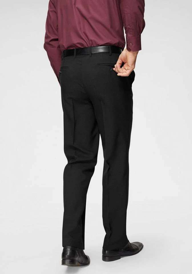 Feine Hosen im Doppelpack für jeden Anlass. Doppelt gekauft = doppelt gespart: Zwei Hosen zum Preis von einer! Sie erhalten jeweils eine schwarze Hose und eine Hose in der Farbe Ihrer Wahl. Damit haben Sie für jede Gelegenheit die richtige Hose zur Hand. Die Hose hat eine klassische, gerade Form. Mit ihrer Bügelfalte ist sie auch für formelle Anlässe die richtige Wahl. Zahlreiche Taschen werten die Hose optisch auf: zwei Eingrifftaschen, je eine Tresor- und Münztasche sowie zwei Gesäßtaschen mit Knopf. Die Hose hat eine leichte Glanzoptik und wirkt dadurch besonders edel. Durch ihren elastischen Bund und die hochwertige Powerstretch-Qualität ist die Hose besonders angenehm zu tragen und Sie fühlen sich nicht eingeengt. Ein weiterer Vorteil an genau dieser Hose ist die pflegeleichte Qualität aus 100% Polyester. Damit können Sie die Hose wie gewohnt in der Waschmaschine waschen und sparen teure Reinigungskosten. Weiterhin ist die Hose bügelfrei. Kombiniert mit einem Business-Hemd und einer Krawatte ist die Hose optimal geeignet für berufliche oder formelle Termine. In Kombination mit einem schlichten Shirt und Sneakern verleiht die Hose eine sportive Lässigkeit – fertig ist der lässige Look für den Feierabend. Für jeden Anlass top gekleidet.