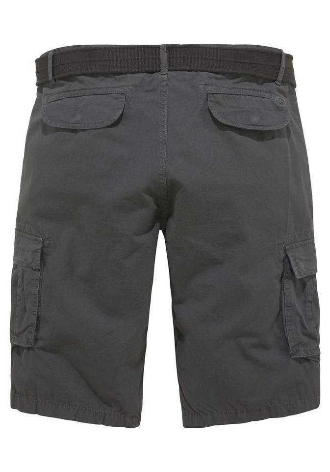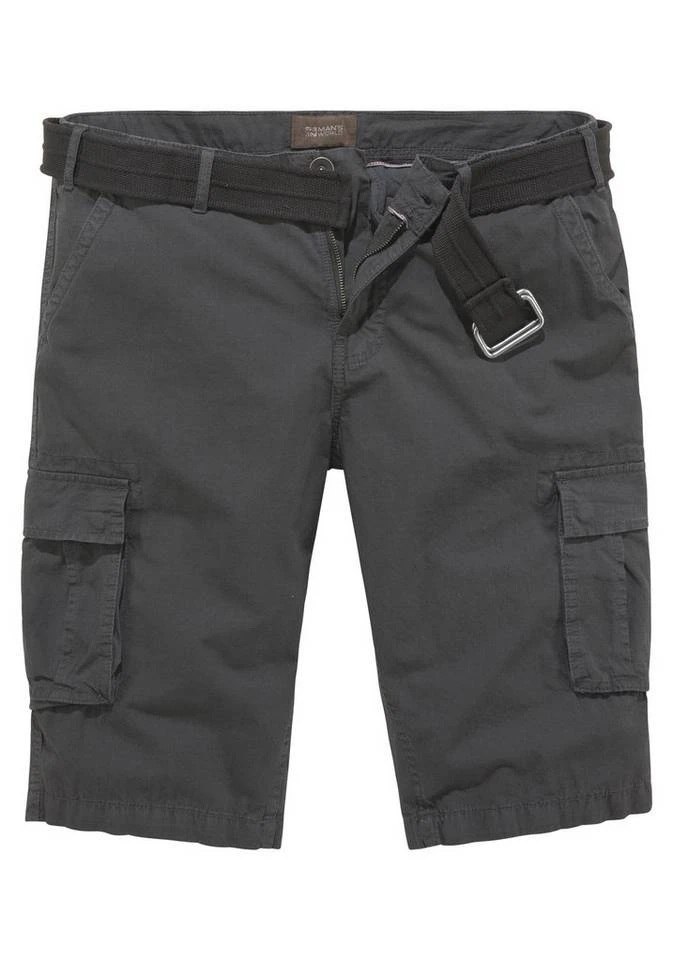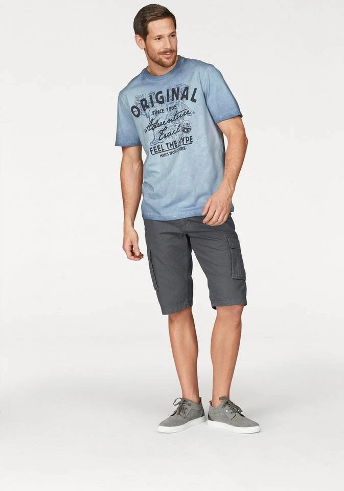 Markant und männlich präsentieren sich die coolen Cargobermudas von Man’s World! Dank der großen, aufgesetzten Cargotaschen ist der Name der Hose hier Programm. Hinzu kommen zwei praktische Pattentaschen auf dem Gesäß der knielangen Herrenhose. Das fein strukturierte Muster ergänzt das moderne Design. Das schmale Bündchen kommt nicht nur mit genialen Schlaufen daher, sondern auch mit einem trendigen, farblich passenden Gürtel. Tragen sich dank angenehmem Material besonders bequem in der Freizeit: die Cargobermudashorts von Man’s World!