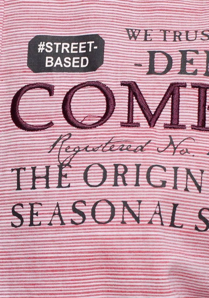 Zugeknöpft? Von wegen! Mit dem Herrenhemd von Man`s World kannst du viele coole Styles kombinieren. Die feine Streifenoptik sowie die hochwertige Applikation mit Stickerei und Druck auf der Vorderseite setzen trendige Eyecatcher-Akzente. Kontrastdetails an Umlegekragen, aufgesetzter Knopfleiste und umschlagbaren Ärmelabschlüssen unterstreichen den smarten Look des Kurzarmhemds. Gleichzeitig sorgen die weiche Baumwollqualität und der entspannte Comfort-fit für einen erstklassigen Tragekomfort. Tipp: Kombiniere das Basic lässig zu Jeans und Sneakers oder casual zu Chinohosen und Lederschnürern. Gut gestylt durch den Tag kommst mit dem Herrenhemd von Man`s World.