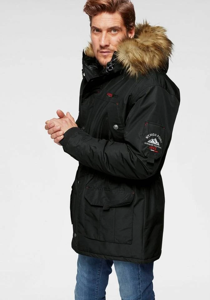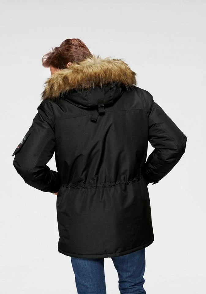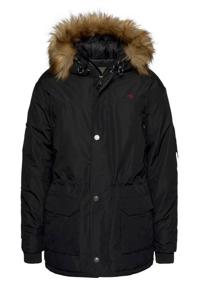 - Mit verstellbarer Kapuze und abnehmbarem Fellimitatkragen