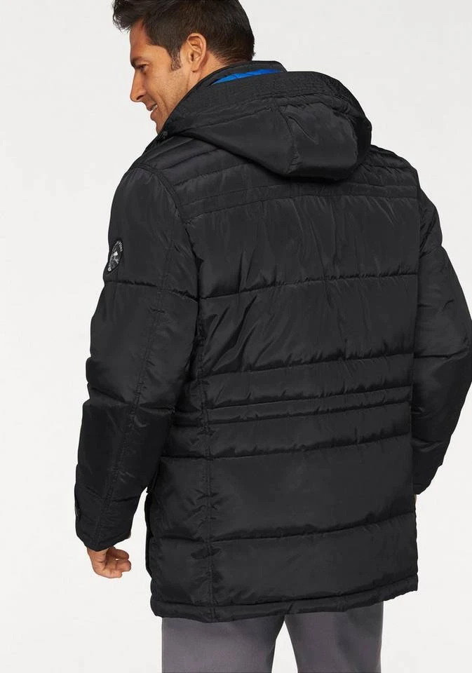 Man's World hat mit dieser Stepp-Langjacke ein tolles Teil kreiert, das Eindruck macht! Die kontrastfarben gefütterte, abnehmbare Kapuze ist der Eyecatcher an dieser Jacke, die mit den großen Patten-/Eingrifftaschen besonders praktisch ist. Die Druckknopfblende über dem Zipper und innen liegende Ärmelbündchen sorgen dafür, dass Kälte und Wind draußen bleiben. Details wie die Riegel am Ärmelabschluss und das kleine Logobadge runden das Design wunderbar ab. Mit ihrem wärmenden Futter und dem robusten Material verspricht die Herrenjacke optimalen Tragekomfort. Die Stepp-Langjacke von Man's World sieht einfach immer einfach gut aus!